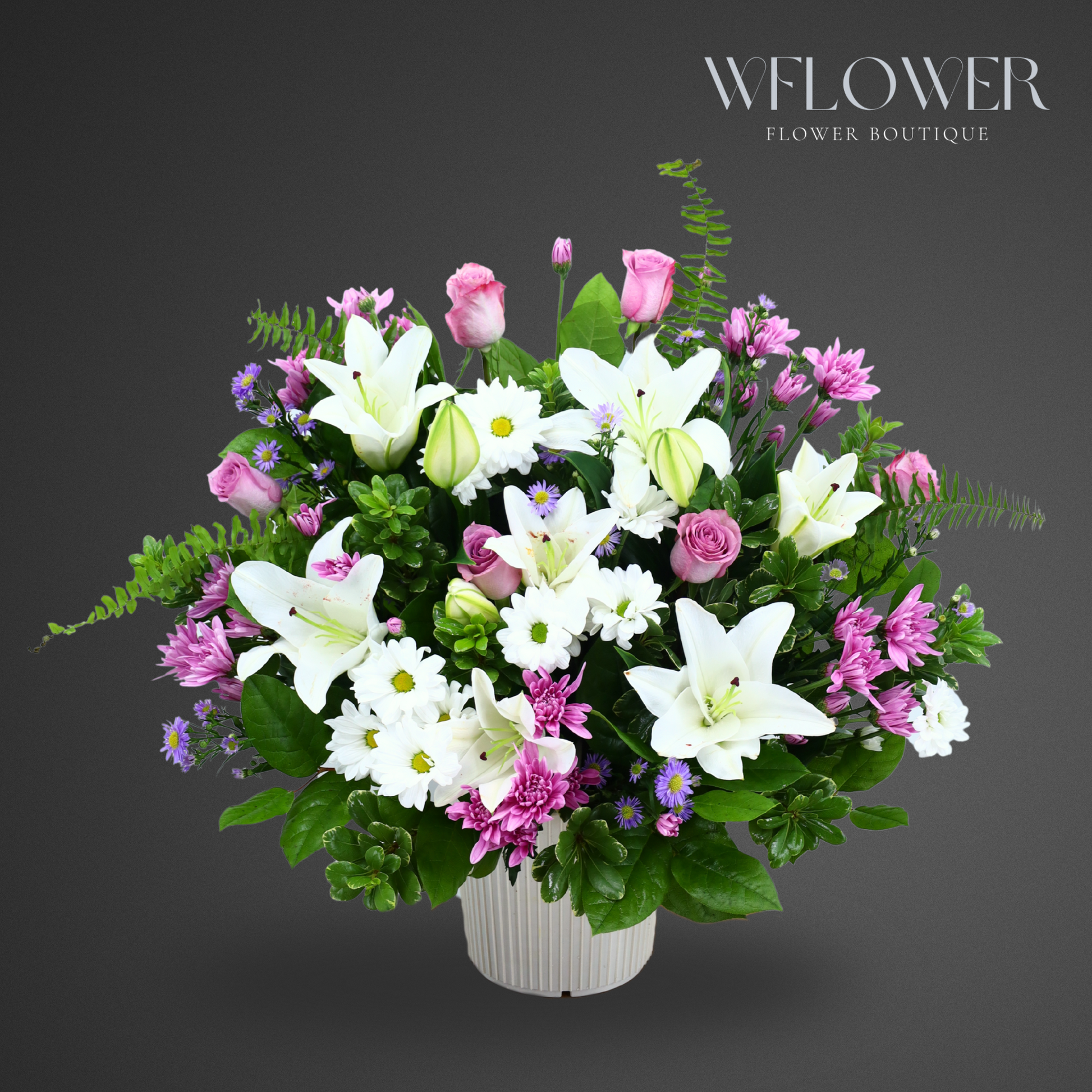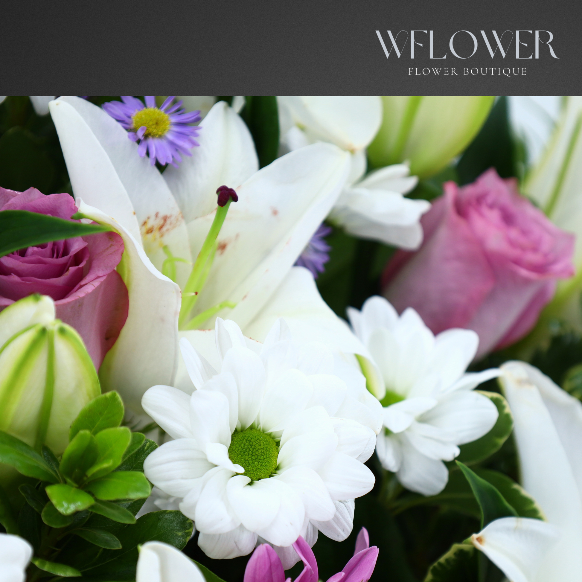 At WFLOWER, we take great pride in ensuring that every bouquet and arrangement is as beautiful and fresh as possible. To guarantee the highest quality, we may occasionally substitute certain flowers or colors based on seasonal availability or freshness. While we always strive to match the style, theme, and overall look of the arrangement shown, substitutions may occur with flowers of equal or greater value.